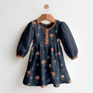 Autumn Wildflowers Seamless Pattern Digital Download – Fall Floral Fabric Design (Navy)